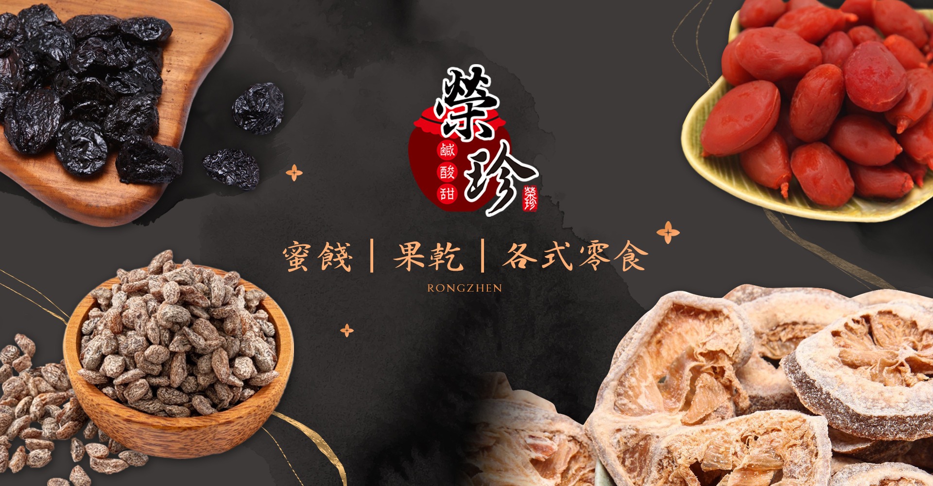 『榮珍蜜餞』嚴格挑選新鮮自然的食材,用心製作,堅持品質,『榮珍蜜餞』不追求華麗的外表,而是注重內在的美味,讓每一口都蘊含著純正的鹹、酸、甜滋味,讓您感受到食材的自然風味。
